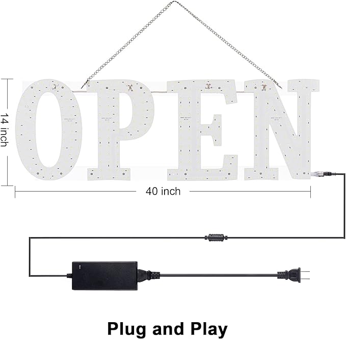 - Easy To Install - This open sign includes a sturdy chain for hanging and easy to install on any storefront, glass door or window. Equipped with power adapter, plug and play.