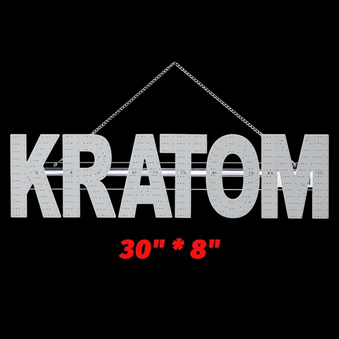 8"x30" Large LED KRATOM Sign for Smoke Shops, Super Bright Unique Design KRATOM Sign with Hanging Installation, High Visibility KRATOM Sign for Stores Retail Shops Window.