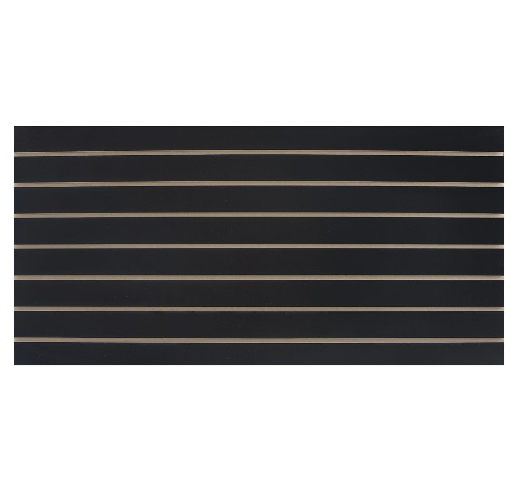 These Black Horizontal Slatwall Panels With Metal Inserts are made of 100% recycled materials and have no added formaldehyde. The finish provides a stunning display option for your merchandise. You can also add accessories to enhance the display performance such as slatwall shelves, brackets, faceouts, peg hooks, and other display options. Panel dimensions are 4'H x 8'W x 3/4," 3" O.C.